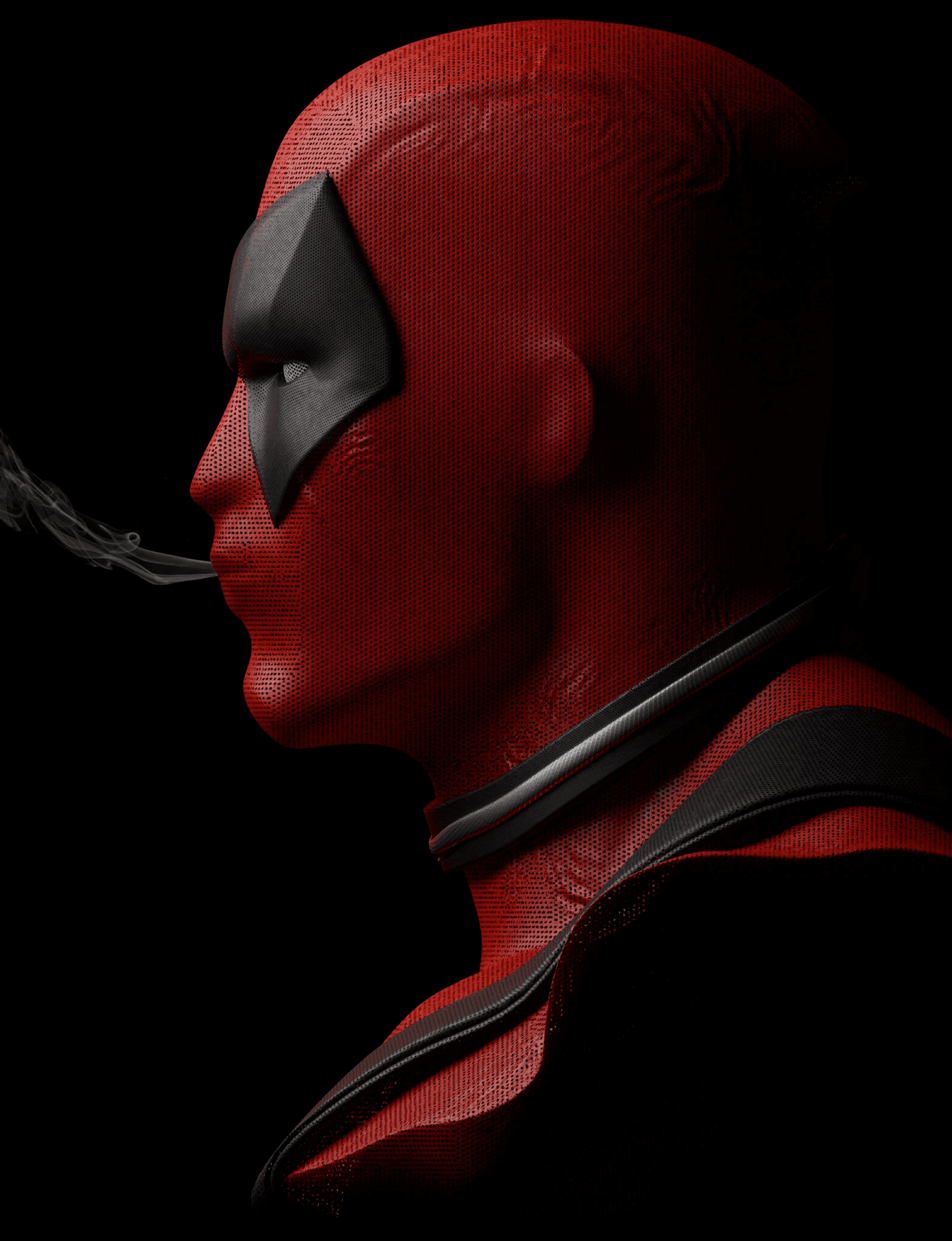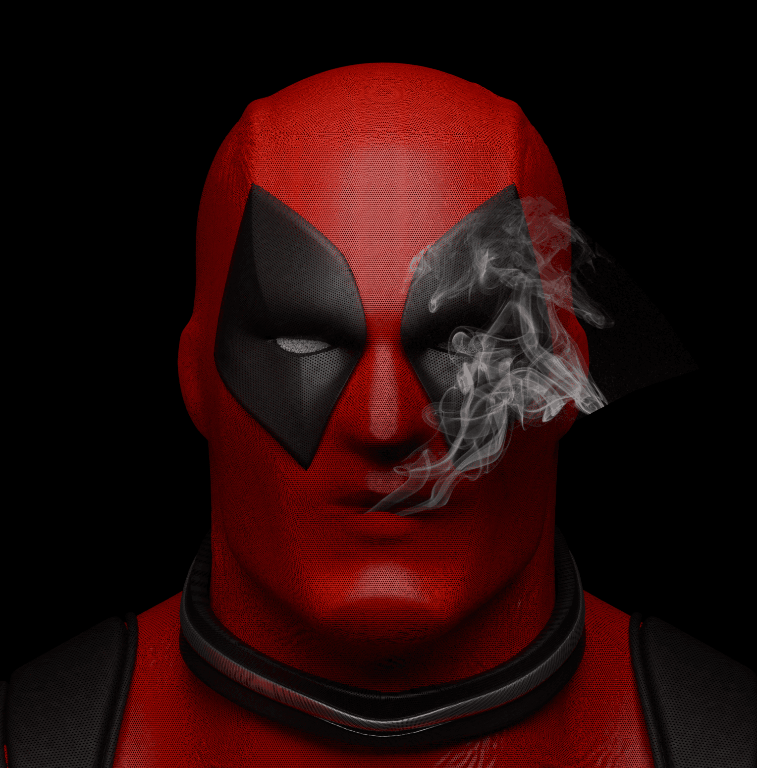 "'The Dead Smoke' is a personal project in which I tried to create a statue of Deadpool. In this one, I aimed to recreate a scene from the first Deadpool movie, where he exhales gun smoke from his mouth. Also, I redesigned his look to be a bit more masculine to add a unique touch to it.